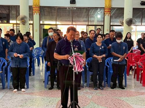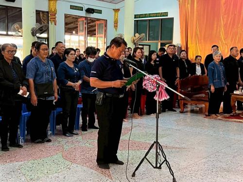 โดยท่านประธานในพิธี กล่าวคำถวายอาลัย ยืนสงบนิ่ง และผู้เข้าร่วมกิจกรรมได้ตั้งปณิธานทำความดี เพื่อถวายเป็นพระราชกุศลแด่สมเด็จพระบรมราชชนนีพันปีหลวง