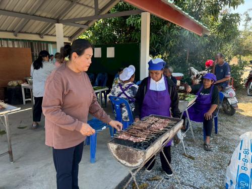 กิจกรรมอาชีพสันคอหมูย่าง ขนมเเดกกล้วย เเละปลูกผักเพาะพันธุ์ผักสวนครัว