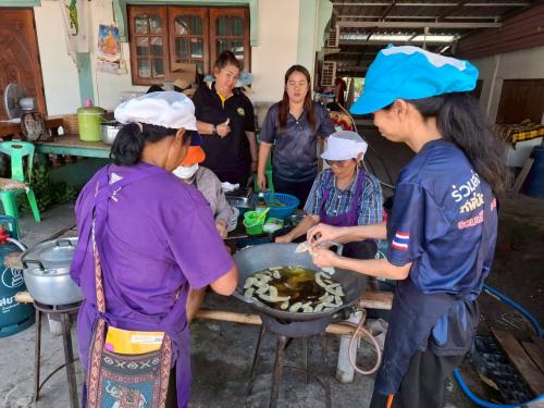 กิจกรรมอาชีพสันคอหมูย่าง กล้วยทอด เเละปลูกผักเพาะพันธุ์ผักสวนครัว